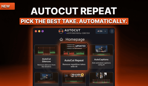 This month, we’re introducing new improvements to help you edit faster and make better content decisions. From smarter take selection with AutoCut Repeat to more precise and customizable viral clip generation with AutoViral, these updates are designed to reduce manual work and give you more control over your editing workflow.