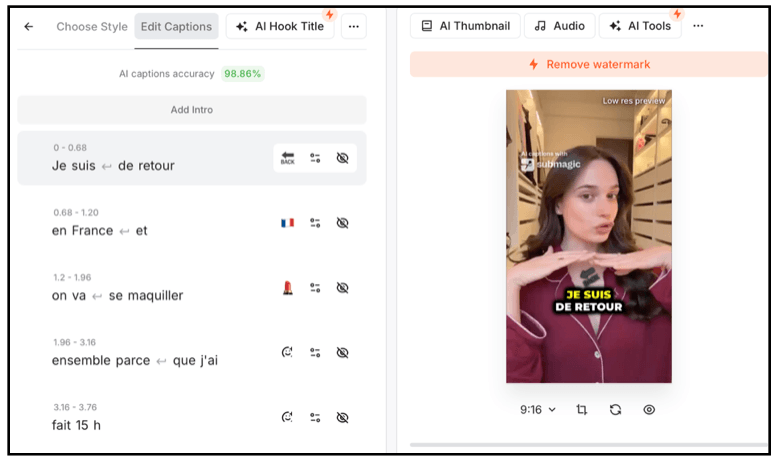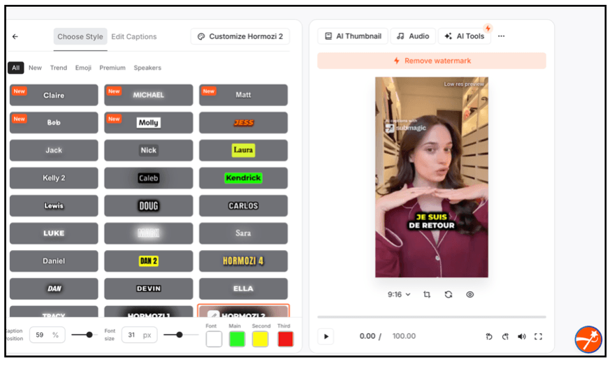 Submagic Submagic offers around 35 built-in caption styles Advantage :